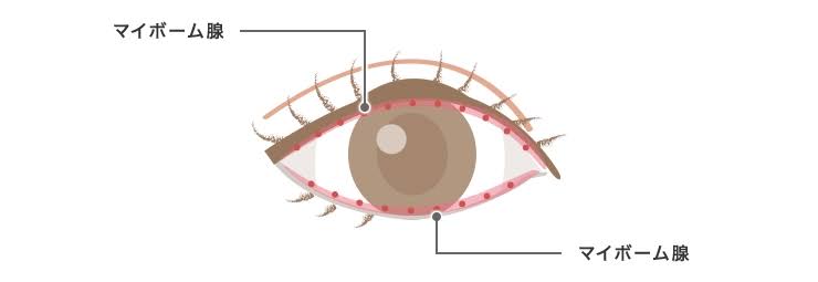 上下のまつ毛の生え際よりやや内側にマイボーム腺という穴があり、涙の蒸発を防ぐ油脂を分泌しています。